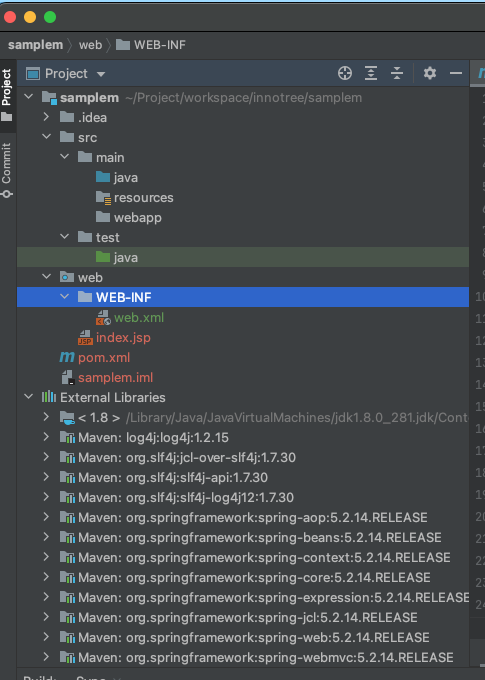 웹과 관련된 디렉토리와 파일들이 프로젝트 아래 web이라는 디렉토리에 만들어졌다. 하지만 이 위치는