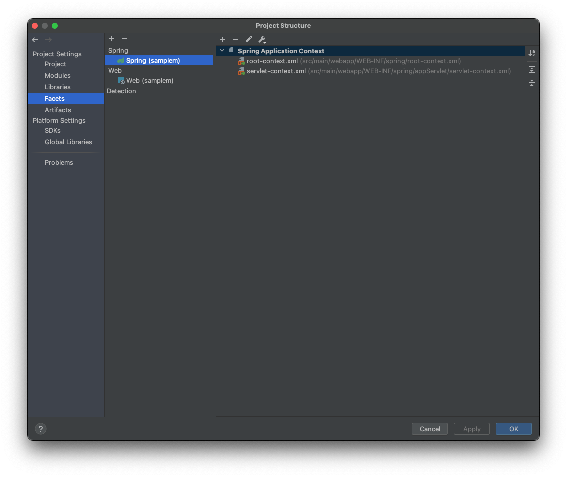 이제 Project Settings 항목 아래의 Facets로 자리를 옮겨보자.