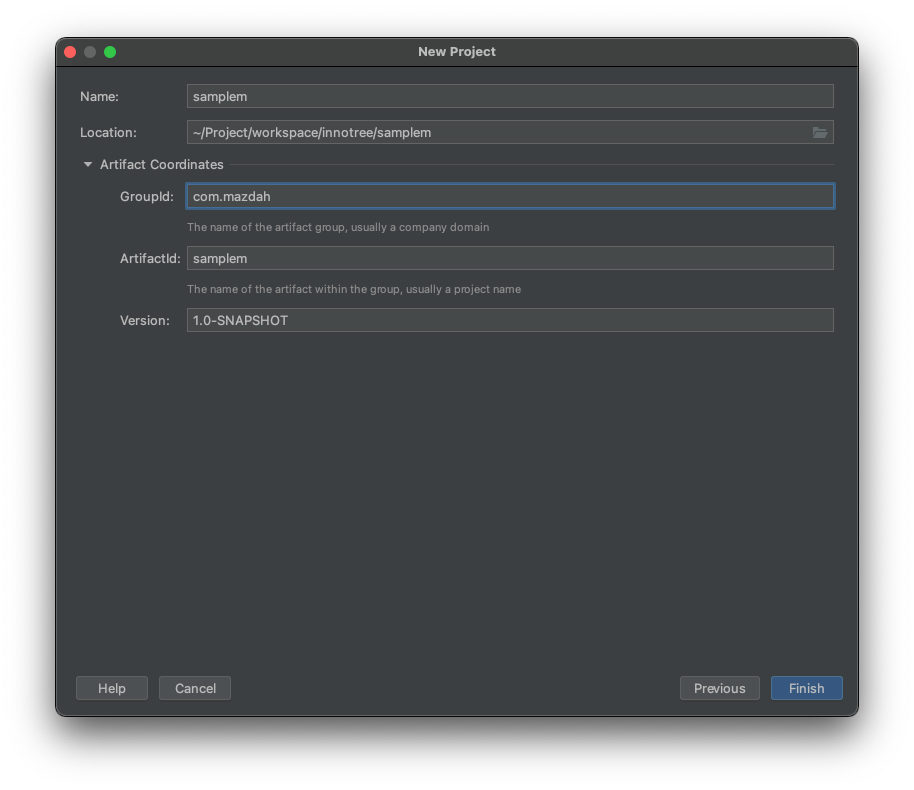 다음으로 적절하게 프로젝트 정보를 입력해 준다. 입력할 것이 많지 않아서 좋다. Artifact쪽은 입력 폼