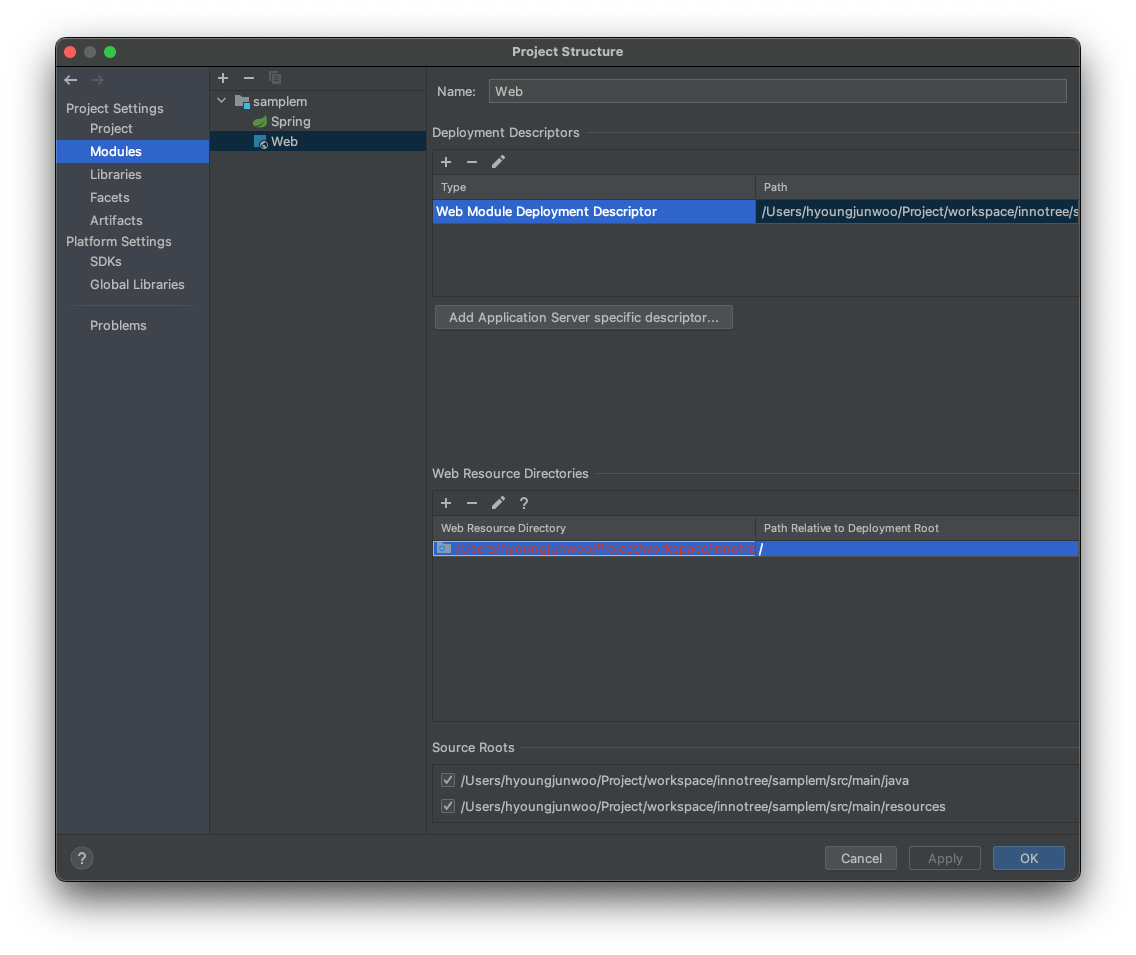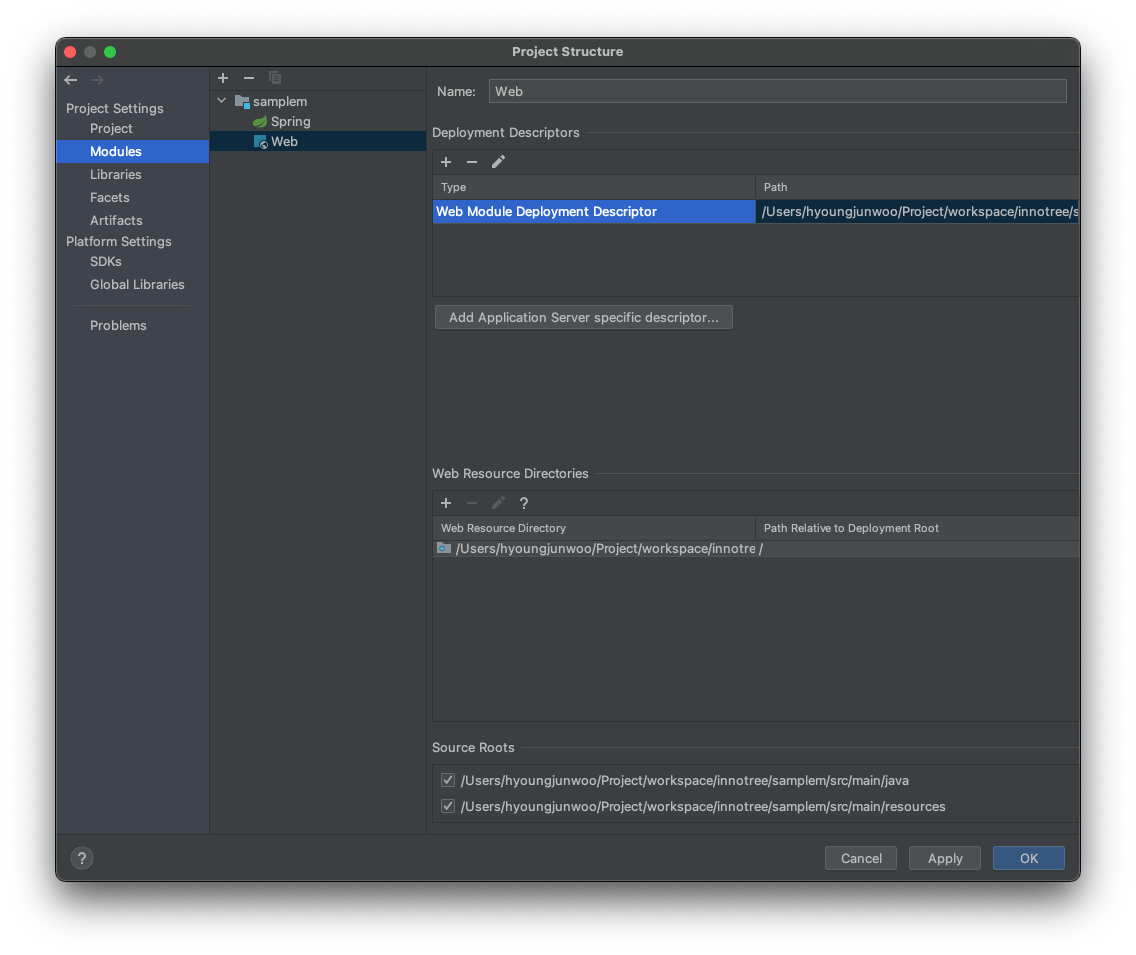 이제 디렉토리와 파일은 모두 준비가 된 것 같으니 IntelliJ의 프로젝트 설정에서 마무리를 지어주자.