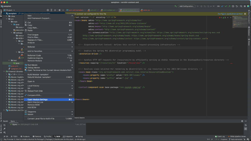 프로젝트 이름 위에서 마우스 오른쪽 버튼을 클릭하고 Open Module Setting를 선택한다.