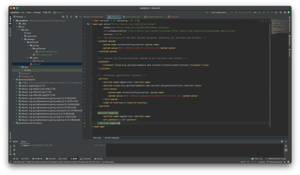 그리고 web.xml 파일에 새로만든 두 파일에 대한 경로가 잘 설정되어 있는지 확인한다.