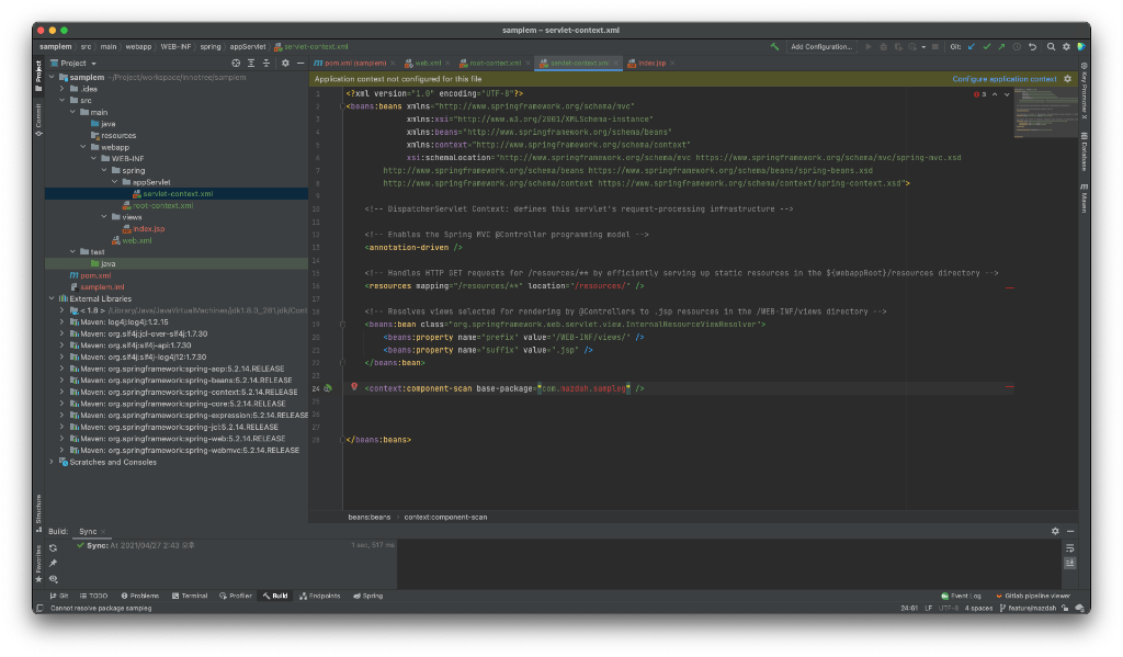 설정하기 위해 servlet-context.xml 파일을 열자.