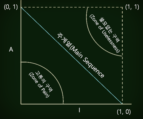 ✓ 주계열: 가장 이상적인 컴포넌트가 위치주계열과의 거리(D) = |A + I -1|
